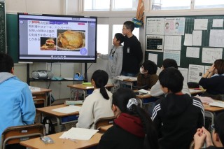 アメリカを調べた班によるレポート発表を聞きました。発表後、アメリカ班が作成したテスト問題を解きました。