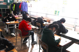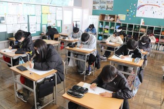 1限、6-2は国語で漢字50問テストをしました。