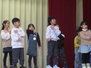 1年生の「はじめの言葉」、3年生の「プレゼント」と続きました。