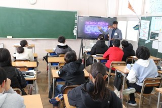 八海中学校のALTプラモ先生から、中学校の英語の授業を少しやっていただきました。