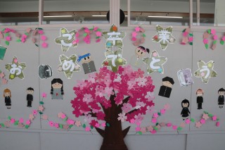 校内の掲示が3月版「卒業おめでとう」に代わりました。