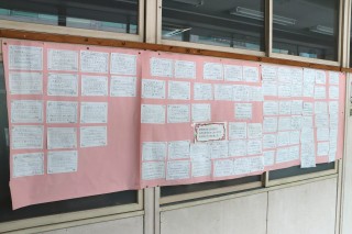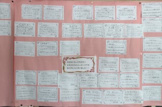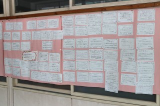6年卒業プロジェクトの一つ「先生方へのメッセージ」が職員室前に掲示されました。