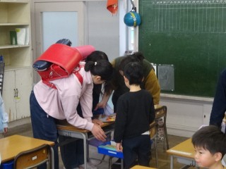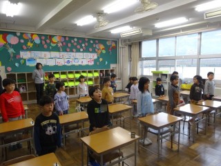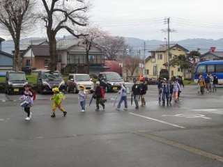 今日から、1年生も登校班で登校です。少し肌寒い日になりましたが、元気いっぱい登校してきました。1年生は登校班長や副班長に連れられて教室へ来ました。そして、ランドセルの荷物を片付けや名札付けを手伝ってくれました。優しいまなざしで見守り、困っているときにはやさしく教えている6年生です。1年生は朝の支度も終わり、元気に「おはようございます」をしました。