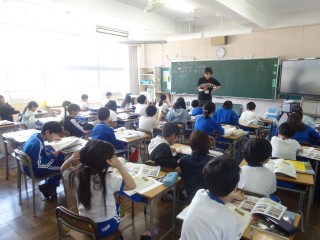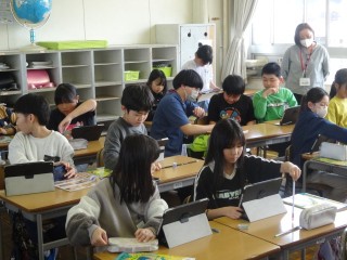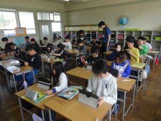 4限、5-1は図工「形に命をふきこんで」。ipadのコマ撮り機能を使って、面白い動きをつくり出すことに挑戦しました。題材は、鉛筆や消しゴム、教科書、定規などです。タブレット端末のよさは、速さと繰り返しできることです。失敗などありません。試行錯誤しながら、偶然できた面白さ、何回もやっているうちにコツをつかむ、友達の作品に刺激を受け、楽しんで挑戦していました。どんな作品ができたでしょうか。