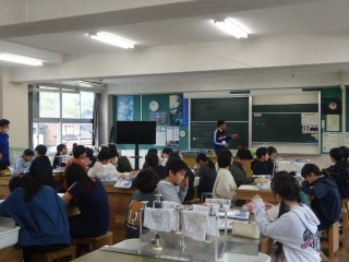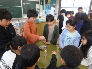 3限、6-1は理科「ものの燃え方と空気」。◎(課題)は「集気びんの中でろうそくを燃やし続けるにはどうすればよいだろうか」。6年生の理科は、化学分野が多くなり、実験もたくさんあります。予想では、①ふたあり、②ふたなしともろうそくは燃え続けるという考えが圧倒的多かったです。実際に実験で確かめてみると・・・。自分たちで実際にやって確かめたことは、身に付いていきます。班で協力して、安全に楽しそうに学習していました。