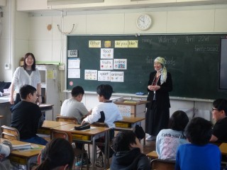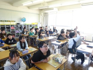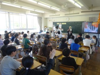 ALTの先生が代わったので、「「What ~do you like?」を使って、ALTの先生に好きなものについて質問する学習でした。food、color、fruitsなど、子どもたちはどんどん質問していました。そして、ALTの先生の英語での応答を「あ~なるほど」「私も好き」など、即座に反応する子どもたち。国際科の学習が大好きです。