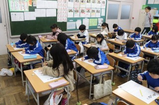 1限、1-1は国語で漢字テストへ向けて練習しました。