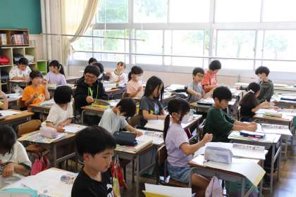 2限、4-1は社会「健康なくらしとまちづくり〜ごみはどこへ」の学習。「わたしたちの学校にはどこにどのようなごみがあるのか」を追究課題に学習しました。学習の最後に、家庭のごみ調べをすることになり、計画や予想を立てていました。お家の皆様、ご協力お願いします。