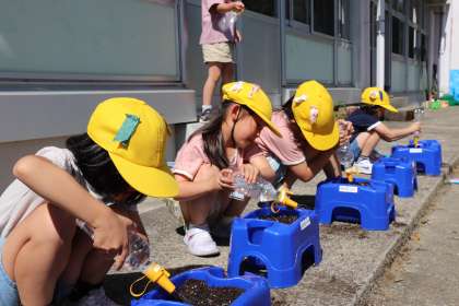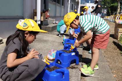 5限、1-1は生活科「アサガオをそだてよう」の学習。「アサガオさんのおふとんをつくろう」を追究課題に、土作りをしました。やわらかい土になるようそっと植木鉢に土を入れました。明日、種をまきます。