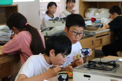 6限、6-2は家庭科「調理実習」。野菜いためを作り終え、おいしくいただきました。