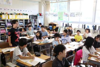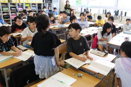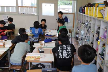 1限、3-1は物語「ワニのおじいさんのたから物」の学習。「登場人物はだれか」を追究課題に学習しました。二人以外に登場人物はいるのか、いないのか議論しました。低学年の時に学習した登場人物についての定義を再確認しました。