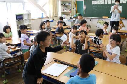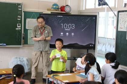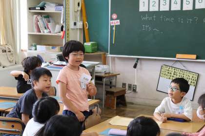 2限、2-1は国際科の学習。時刻の言い方を学習しながら数字に慣れました。