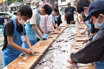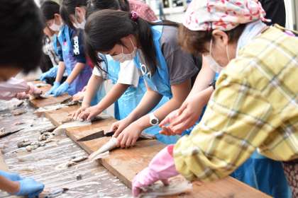 6/6 6年 修学旅行19 小木ダイビングセンター イカ裂き体験2