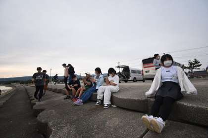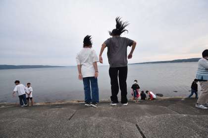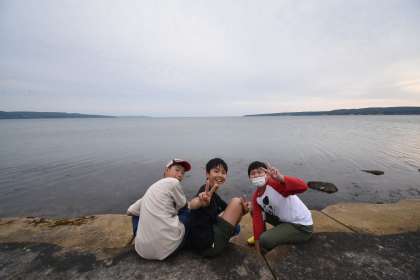 6/6 6年 修学旅行22 佐和田海水浴場にて休憩