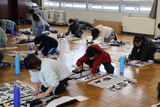 冬休みの練習成果を発揮しようと「大自然」の一画一画を丁寧に書きました。