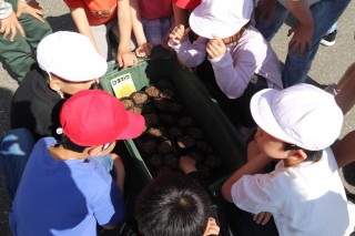 太陽の丸い形に児童は驚いていました。