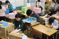 11/14 4-1 図工 ダンボールボックスの作品作りを進めよう