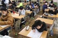 2限、4-1は総合、音楽学習発表会へ向けて太鼓演奏で着る法被のサイズ合わせをしま...