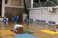 3限、4限、4-1は体育「クロスカントリースキー」。ストックを使い、様々な走法で...