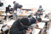 3限、6-2は音楽で「旅立ちの日に」の歌詞テストを行いました。卒業式で歌う「旅立...