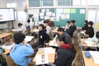 6限、6-2は家庭科「共に生きる地域での生活」。「地域の人たちとのかかわりを見つ...