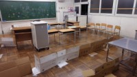 10/10 朝 音楽学習発表会ステージ準備、楽器移動②
