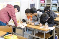 3-1は、担任に一人ひとり冬休みの思い出を伝えました。その後、友だち同士で伝え合いました。4-1は、担任に端末で送った年賀状を共有し、友だちと冬休みの思い出話に花を咲かせました。