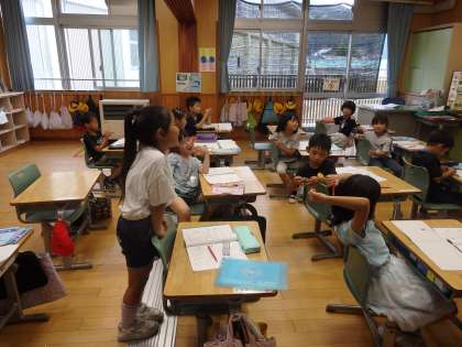 7/4 引き算の文章問題 公開日 2024/07/04 更新日 2024/07/04 教育活動 1年2組の3時間目は算数の授業でした。引き算の学習です。「子どもが9人遊んでいました。そのうち3人が帰りました。残りは何人ですか。」という問題に取り組んでいました。文章を図で表して、内容を確認しながら取り組みました。 いいね(0)