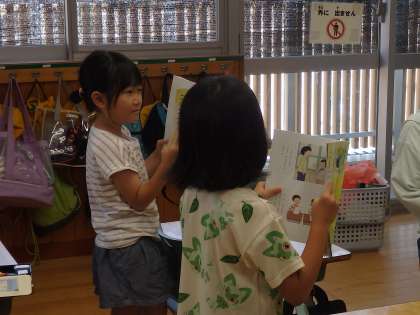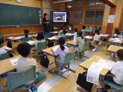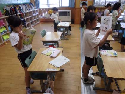 7/5 教科書の内容を動画で見る 公開日 2024/07/05 更新日 2024/07/05 教育活動 1年2組の2時間目は国語の授業でした。まずは「こんなことしたよ」をみんなで音読しました。教科書をしっかりと持って音読していますね。そのあと、「どうやって身を守るのかな」に出てきたスカンクの身の守り方を動画で見て、確認しました。スカンクが出てきた瞬間、「かわいい〜!」という声があちこちから湧き上がりました。 いいね(0)