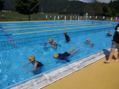 7/5 5,6年生水泳授業1 公開日 2024/07/05 更新日 2024/07/05 教育活動 5,6年生は1,2時間目に水泳授業を行いました。こちらのグループは25m泳ぐことを目標に練習しています。希望する子から「先生、検定やります!」と言って、25m完泳に挑戦します。 いいね(0)