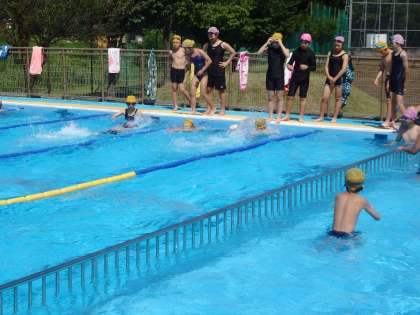 7/5 5,6年生水泳授業2 公開日 2024/07/05 更新日 2024/07/05 教育活動 こちらのグループは前回に引き続き、リレーを行いました、今回は3チームに分けて競争です。チームの仲間に向かって、「頑張れ〜!」と応援する声が響き渡りました。 いいね(0)