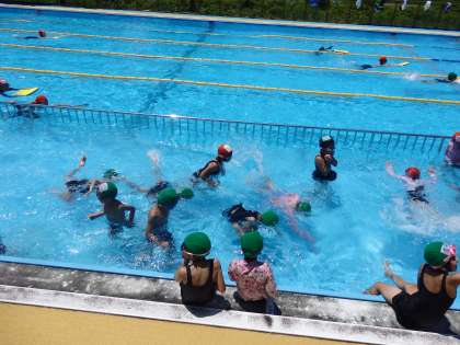 7/5 1,2年生プール授業2 公開日 2024/07/05 更新日 2024/07/05 教育活動 このグループはバタ足の練習を中心に行いました。プールサイドに座ったり、つかまったりしてバタ足の練習をした後、ビート板を使ってバタ足で泳ぎました。最後に水中宝探しゲームを行いました。 いいね(0)