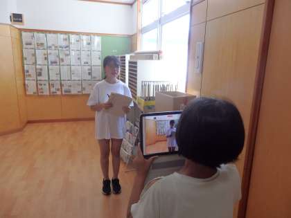最後にスピーチの練習です。ペアでスピーチしているところを動画で撮影し、自分の様子を確認し、オクリンクで先生に提出しました。