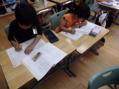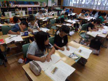 7/9 比べてみよう 公開日 2024/07/09 更新日 2024/07/09 教育活動 2年生の3時間目は国語の授業でした。「2つの文章を比べてみよう」という学習です。動物園にある、アフリカ象についての看板とガイドブックの文章を読み比べて、同じところと違うところを考えました。住んでいる場所、大きさ、体の特徴、食べ物などの内容ごとに考えていきました。 いいね(0)