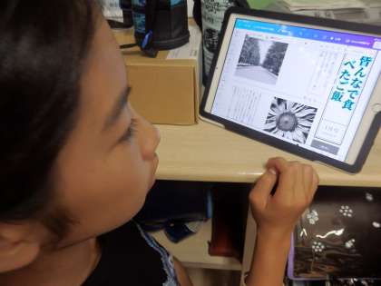 7/9 妙高の思い出新聞 公開日 2024/07/09 更新日 2024/07/09 教育活動 5年生の3時間目は総合の授業でした。妙高の思い出についての新聞を作っていました。iPadを使って、見出しや本文を入力したり、写真を挿入してレイアウトしたりと本格的です。できあがりが楽しみです。 いいね(0)