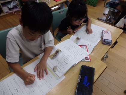 7/10 文章を読み取る 公開日 2024/07/10 更新日 2024/07/10 教育活動 2年生の1時間目は国語の授業でした。「動物園の看板とガイドブック」の学習です。看板には簡単に、「食べ物」では「草、葉、果物」としか書かれていませんが、ガイドブックには何行もの文章で書いてあります。文章を読み取り、ガイドブックとの違いを考えました。 いいね(0)