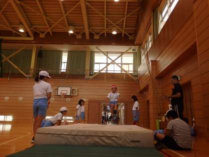 7/10 走り幅跳び 公開日 2024/07/10 更新日 2024/07/10 教育活動 5年生と6年生の1時間目は体育の授業でした。雨でグラウンドの状態が悪かったので、体育館で高跳びと幅跳びの練習をしていました。5年生は幅跳びの練習を行いました。 いいね(0)