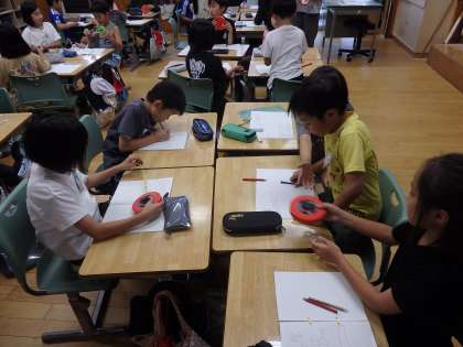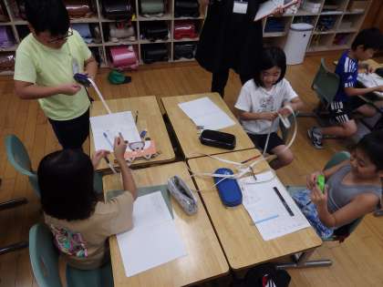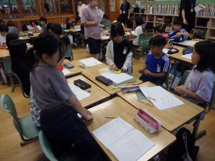 7/10 紙飛行機が飛んだ距離2 公開日 2024/07/10 更新日 2024/07/10 教育活動 3年生の公開授業の続きです。班ごとに巻き尺が2つずつ配られ、実際に触ってみて、気付いたことを出し合いました。「100cmちょうどのところで1mと書かれている」「裏と表で目盛りが違う」「定規と違って柔らかい」などの気づきが発表されました。 いいね(0)