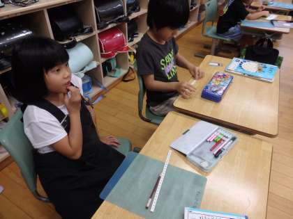 7/11 鉛筆は何センチ? 公開日 2024/07/11 更新日 2024/07/11 教育活動 2年生の1時間目は算数の授業でした。「長さ」についての学習です。自分が持っている鉛筆や赤鉛筆の長さを測って「一番長い人は誰か」を調べていました。どうやら18センチが一番長いようです。「cm」という単位を学びました。 いいね(0)