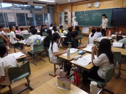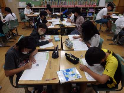 7/11 かけ算か割り算か 公開日 2024/07/11 更新日 2024/07/11 教育活動 6年生の1時間目は算数の授業でした。分数の計算の学習です。「1mの重さが5/3キロの鉄の棒があります。この棒の5/2mの重さは?」などの問題に取り組んでいました。また、問題文に注目して、かけ算と割り算のどちらで計算したら良いか、見分け方を考えました。 いいね(0)