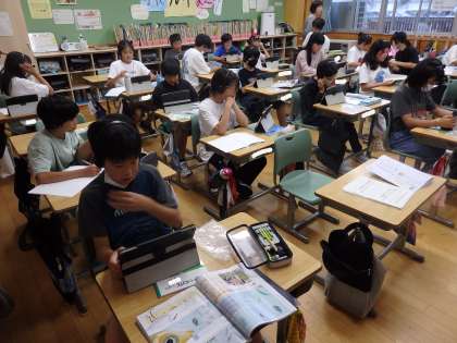 7/11 個別最適な学習 公開日 2024/07/11 更新日 2024/07/11 教育活動 6年生の2時間目は理科の授業でした。「食物連鎖」について、1人1人がiPadで「NHK for school」のHPで動画を選んで視聴していました。ヘッドフォンを装着し、分かったことをノートに書いていきます。文部科学省が提唱している「個別最適な学習」の一つです。 いいね(0)