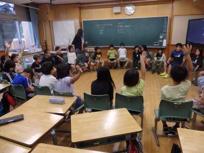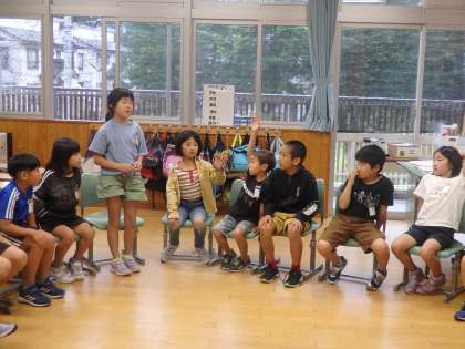 3年生の2時間目は学活の授業でした。クラス会議を行っていました。議題は「お楽しみ会で何をするか」です。みんなで輪になって、司会進行は子どもたちで進めます。意見を出し合い、やる内容と実施日を決めました。来週、分担を決めて、イベントのルールや進行などの準備を進めていきます。