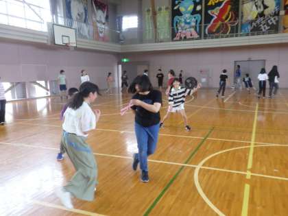 7/12 容赦なく 公開日 2024/07/12 更新日 2024/07/12 教育活動 6年生の「親子対抗シッポ取り」。日頃の感謝の気持ちを込めて(?)、容赦なく大人を追い詰める子どもたちでした。子どもたちのうれしそうな顔をご覧ください。結果はもちろん、子どもたちの圧勝でした。 いいね(0)