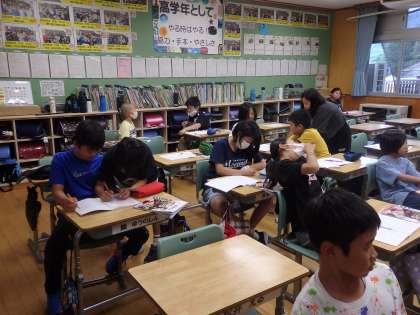7/16 整数÷小数の計算 公開日 2024/07/16 更新日 2024/07/16 教育活動 5年生の1時間目は算数の授業でした。整数÷小数の計算の学習です。6÷2も60÷20も答えは同じになることを確認し、240÷1.5などの問題に取り組みました。お互いに教え合ったりしながら、取り組んでいました。 いいね(0)
