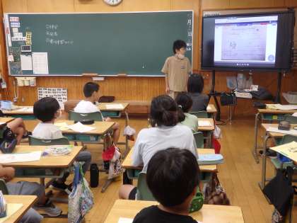 5年生の2時間目は国際科の授業でした。「夢の時間割」をみんなの前で発表しました。まず「将来の夢」を言い、その後、「3教科の時間割」と「どの教科を誰と勉強するのか」を発表しました。ジェスチャーを付けたり、目線をみんなに向けたりと発表する姿勢がとてもよかったです。