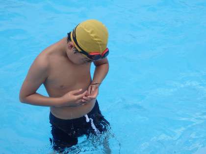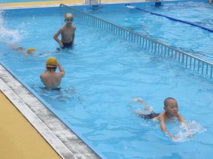 5,6年生の水泳授業の続きです。着衣水泳が終わって、フリーで最後の水泳授業を楽しみました。体操着を脱いで、水に入ると「軽〜い!」という声があちこちから上がっていました。中にはミズカマキリを3匹も捕まえている子がいました。