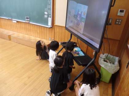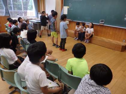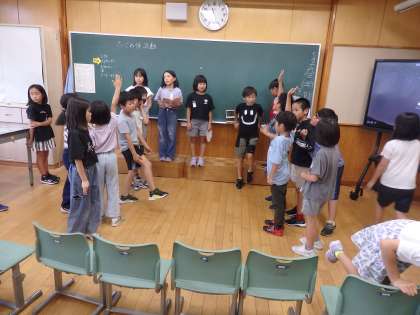 7/19 係の発表 公開日 2024/07/19 更新日 2024/07/19 教育活動 3年生の4時間目は係の発表の時間でした。「アナウンサー係」は心理テストを出題しました。「お笑い係」は算数の授業を舞台にしたコントを発表しました。写真の奥でカメラを構えている風にしている子は「校長役」なんだそうです。「本係」は電子黒板を使って絵本の読み聞かせをしました。 いいね(0)