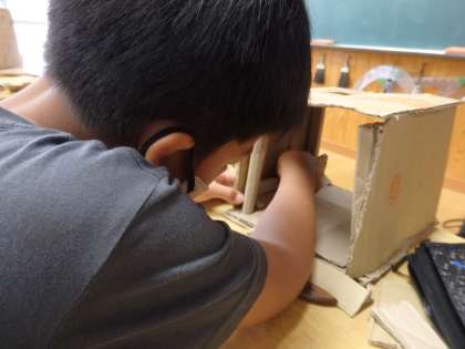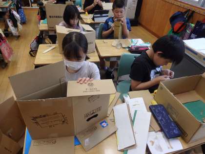 7/22 段ボールハウスを建てる 公開日 2024/07/22 更新日 2024/07/22 教育活動 4年生の2時間目は図工の授業でした。段ボールを切ったり折ったりして、ボンドでつなぎ合わせて建物を作っていました。かなり大きな家を作っている子もいれば、内側の細かいところまで作り込んでいる子もいました。 いいね(0)