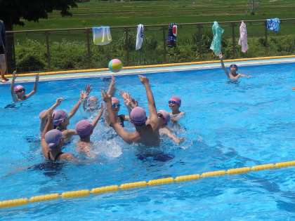 6年生は3,4時間目にプールでお楽しみ会を行いました。3時間目は「男子対女子 水球対決」でした。なかんかあ白熱した試合展開でした。