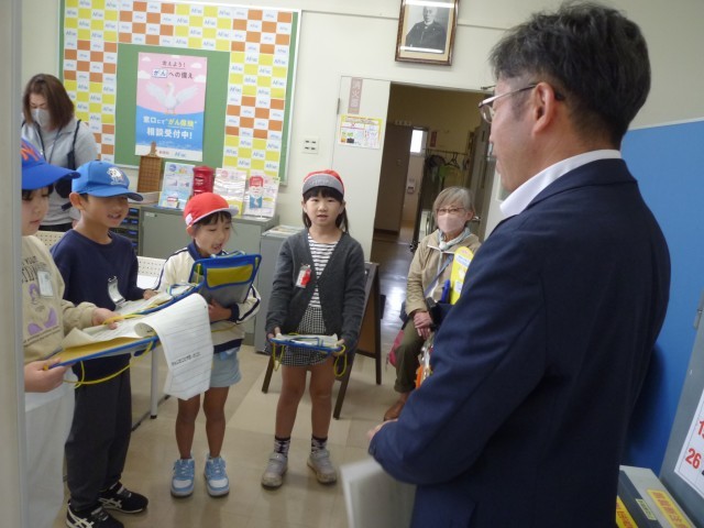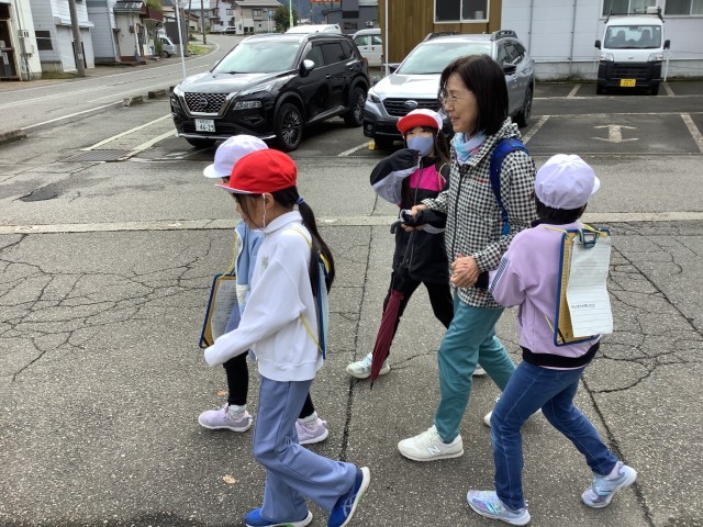 いよいよ本番です。道すがらの安全確保と困ったときのお助けにとボランティアさんが、それぞれの班についてきてくださいます。でも、頼りすぎず自分たちでがんばろうとめあてをもってスタートしました。